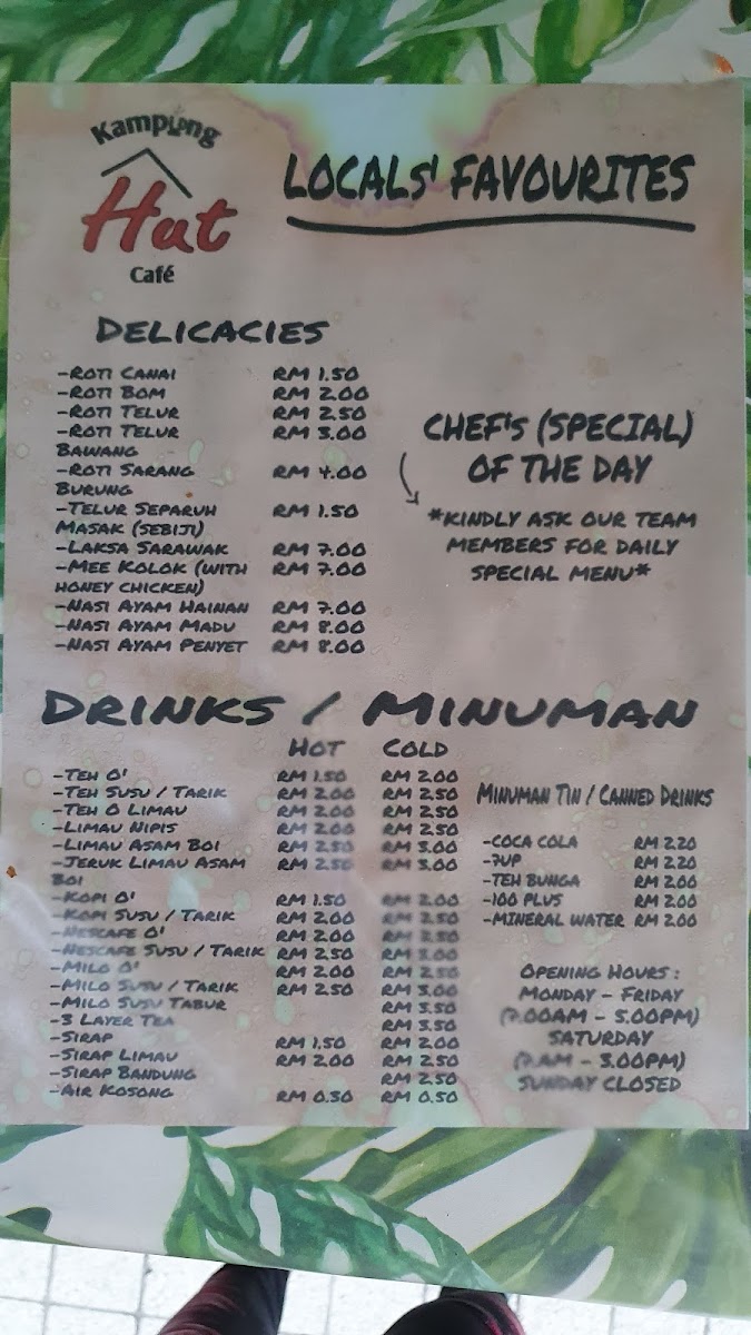 Kampung Hut Cafe Menu